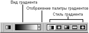 вынесены в виде кнопок в нижнюю часть палитры. Вверху палитры расположен