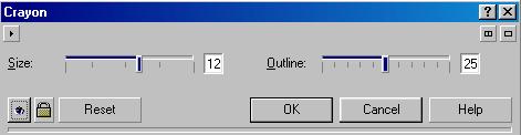 Другой вариант рисунка с помощью мелков (Рис. 18.10, второй справа) можно получить, выбрав команду меню Crayon (Мелок). В связанном с эффектом диалоге (Рис. 18.13) настраивается размер мелка с помощью ползунка Size (Размер). Кроме того, можно установить с помощью ползунка Outline (Контур) толщину линий контура. Картины, полученные с помощью этого эффекта, выглядят значительно проще, чем при использовании предыдущего художественного эффекта.