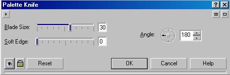 Оригинальный эффект (Рис. 18.15, второй слева) вызывается командой Palette Knife (Нож палитры). В диалоге настройки эффекта (Рис. 18.17) выбирается ширина мазков с помощью верхнего ползунка. В правой части диалога устанавливается направление мазков. Ползунок Soft Edge (Мягкие грани) позволяет смягчить края мазков.