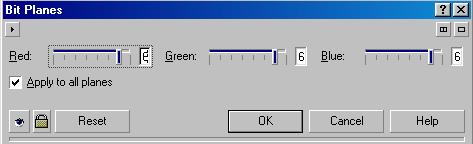 Эффект постеризации (Рис. 18.38, слева), то есть выделение областей рисунка и закрашивание их одним цветом выполняется командой Bit Planes (Слои бит). Вы можете выполнить преобразование для каждого из цветовых каналов. В диалоге настройки эффекта (Рис. 18.39) определяется чувствительность эффекта. Высокие установки задают меньше тоновых переходов. При минимальных значениях рисунок будет содержать цветовые помехи, так как мелкие изменения носят случайный характер. Установив флажок, вы одинаково меняете значения для всех каналов, а убрав его, можете настроить различную чувствительность для разных цветов.