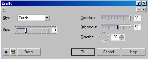 Для разбиения рисунка на множество составных частей (Рис. 18.48, слева) следует воспользоваться командой Crafts (Ремесла). В появившемся диалоге (Рис. 18.49) вы можете выбрать в списке Style (Стиль) один из вариантов эффекта. Можно выбрать картонки, карамель, чипсы, керамическую плитку или иной материал для создания мозаики. В результате вы получите самые разные изображения. С помощью ползунка Size (Размер) задается размер элементов. Уменьшая значение Complete (Полнота), вы создадите незавершенную мозаику, часть элементов которой заменена черными пустотами. Ползунком Brightness (Яркость) задается яркость рисунка, а с помощью элемента Rotation (Вращение) можно повернуть элементы.