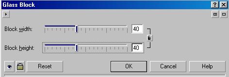 Чтобы увидеть рисунок через стеклянные блоки (Рис. 18.54, слева), выберите команду Glass Block (Стеклянный блок). В диалоге настройки эффекта (Рис. 18.55) устанавливается размеры блоков.