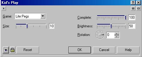 Превратить иллюстрацию в детский рисунок (Рис. 18.54, второй слева) можно с помощью команды Kids Play (Детский рисунок). В диалоге настройки эффекта (Рис. 18.56) в списке Game (Игра) выбирается тип составляющих элементов. Доступны самые разные типы, сильно отличающиеся друг от друга. С помощью ползунка Size (Размер) устанавливается размер элементов, в поле Complete (Полнота) задается процент заполнения рисунка. В поле Brightness (Яркость) задается яркость, а с помощью Rotation (Вращение) элементы рисунка можно повернуть.