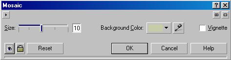 Классическую мозаику также можно создать с помощью CorelDRAW 10 (Рис. 18.54, второй справа). Эффект вызывается командой Mosaic (Мозаика). В диалоге настройки эффекта (Рис. 18.57) с помощью ползунка Size (Размер) задается размер элементов мозаики. Кроме того, вы можете задать цвет фона, просвечивающего между камешками мозаики.