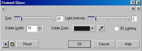 В диалоге настройки эффекта (Рис. 18.61) вы можете выбрать цвет стекла. С помощью ползунка Tint (Оттенок) задается прозрачность стекла, а ползунком Blurring (Размывание) устанавливается степень размытия рисунков. Чтобы получить рисунок, похожий на стеклянные витражи (Рис. 18.59, справа), нужно выбрать команду Stained Glass (Цветное стекло). В диалоге настройки эффекта (Рис. 18.62) с помощью ползунка Size (Размер) задается размер элементов витража, а ползунком Light Intensity (Интенсивность света) устанавливается яркость. С помощью Solder Width (Ширина спайки) задается ширина полосы между стеклянными элементами, а с помощью Solder Color (Цвет спайки) - их цвет. Установив флажок 3D Lighting (Трехмерное освещение), вы придадите работе более интересный вид.