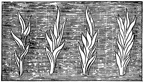 Благодаря любезности мистера Филда у меня есть несколько образчиков восковых свечей на разных стадиях изготовления, в том числе одна еще только половинной толщины. Сняв свечи с рамы, их катают по гладкой каменной плите, верхушке придают надлежащую коническую форму, а нижний конец аккуратно обрезают. Делается все это столь тщательно, что таким образом можно изготовлять свечи четвериковые, шестериковые и т. д., т. е. такие, которых на фунт идет ровно по 4, по 6 или сколько потребуется.