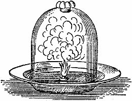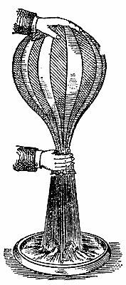 Итак, вы убедились на опыте, что при сгорании свечи получаются некоторые вещества и что в числе этих продуктов сгорания находится уголь, т. е. сажа. Этот уголь, сгорая, дает некий другой продукт; теперь мы займемся выяснением, что это за другой продукт горения. Мы видели, как что-то улетучивалось и исчезало. Теперь мне нужно, чтобы вы поняли, сколько вещества улетает в воздух, а для этой цели мы устроим горение в несколько большем масштабе. Вот от этой свечи поднимается нагретый воздух. Двух-трех опытов будет достаточно, чтобы показать вам восходящий ток газа. Но чтобы дать представление о количестве вещества, которое таким образом летит вверх, я сейчас проделаю еще один опыт и постараюсь уловить часть получающихся продуктов горения. Для этого у меня есть детский воздушный шар: сейчас я им воспользуюсь только как своего рода меркой для тех продуктов горения, которыми мы в данный момент занимаемся. А пламя я устрою простое - такое, чтобы оно наилучшим образом соответствовало поставленной мною цели.