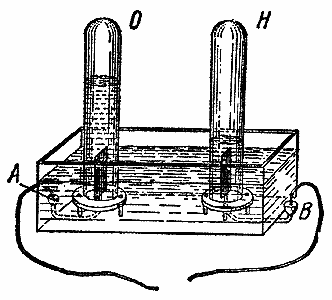 Хотя я и упустил несколько пузырьков, но видно, что реакция протекает равномерно; и если бы не то обстоятельство, что цилиндры не совсем одинаковее, вам было бы видно, что здесь в цилиндре Н, газа вдвое больше, чем там, в цилиндре О. Оба эти газа бесцветны; они находятся над водой, не конденсируясь; они одинаковы по всем признакам - я хочу сказать, по всем видимым признакам; однако мы должны исследовать эти вещества и выяснить, что они собой представляют. Каждого газа у нас помногу, и нам легко делать с ними опыты.