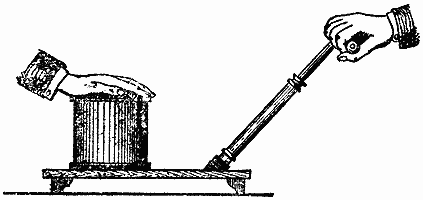 Хотя мы изрядно долго задержались на вопросе о массе воздуха, мне хотелось бы упомянуть еще об одном его свойстве. В опыте с духовым ружьем вы убедились, что прежде чем вылетела первая картофельная пробка, мне удалось вдвинуть вторую на полдюйма или даже больше. А это зависит от замечательного свойства воздуха - от его упругости. С ней вы можете познакомиться на следующем опыте.