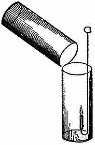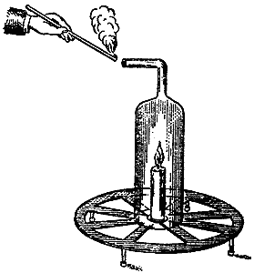 Перейдем теперь к другому весьма важному разделу нашей темы. Припомните, что, когда мы занимались горением свечи, мы выяснили, что при этом образуются различные продукты горения. В числе этих продуктов - сажа, вода и еще что-то, до сих пор еще не исследованное нами. Воду мы собирали, а другим веществам предоставляли рассеиваться в воздухе. Займемся теперь исследованием некоторых из этих продуктов.