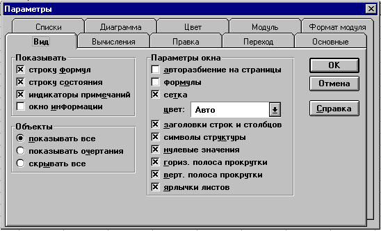 Рис. 19.4. Диалоговое окно команды СЕРВИС, Параметры