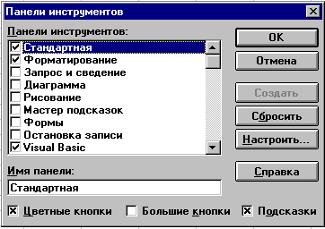 Рис. 19.8. Диалоговое окно для выбора панелей инструментов