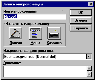 Рис.19.17 Диалоговое окно "Запись макроса"