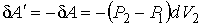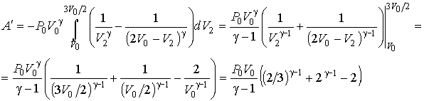 Пусть происходит уменьшение в два раза половины сосуда, описываемой объемом , то есть объем изменяется от до . Соответственно объем увеличивается от до . Тогда элементарная работа, совершаемая над газом, будет определяться разностью давлений в двух частях сосуда: