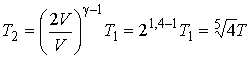 На основании уравнения адиабаты (2.86) запишем соотношение между температурами и объемами газа в начальном и конечном состояниях: