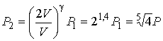 При адиабатическом сжатии газа поршнем увеличение его внутренней энергии равно работе, совершенной поршнем. Температура и давление газа в конце процесса могут быть найдены с помощью соотношений (2.86) и (2.85), из которых имеем: