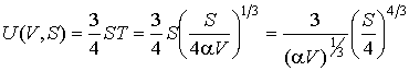 Решение: Использование приведенных в условии задачи выражений для внутренней энергии и энтропии позволяет получить зависимость внутренней энергии от параметров и :