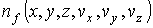 Если ввести 6-мерное пространство, координатами молекулы в котором являются величины  ,  ,  ,  ,  и  , то функция распределения в таком пространстве будет зависеть от этих шести переменных:  . Считая пространственные переменные  ,  ,  и компоненты скорости  ,  ,  статистически независимыми друг от друга, на основании формулы (5.10) можно записать:
